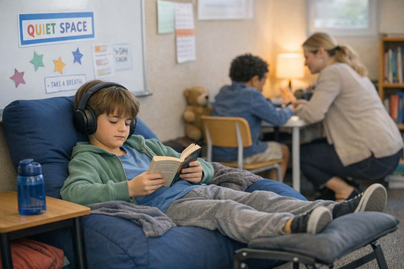 Reduced sensory load in classrooms (lighting, clutter, noise)